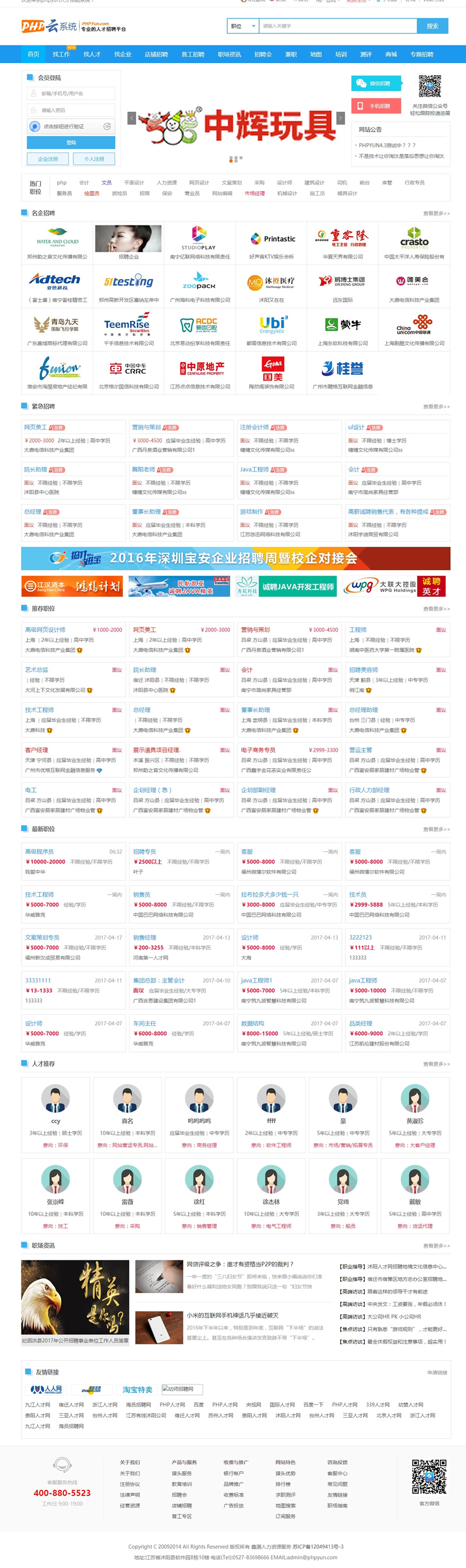 PHP云人才系统是一个采用 PHP 和 MySQL 数据库构建的高效开源的人才与企业求职招、聘解决方案,在尊重版权的前提下能极大的满足站长对于网站程序进行二次开发。PHP云人才系统作为一款拥有自主知识产权的中文人才运营系统,力争为给众多的地方门户、行业人才提供一个易用、功能强大的人才系统。一、PHP云人才系统产品配置需求: (1)、PHP5 、Mysql5、Apache2/IIS6 以上环境 (2)、可以运行于Windows、Linux、Mac等多种平台 (3)、浏览器前台需要用户开启Cookie功能(浏览需要IE6、火狐 3.x 以上) 二、PHP云人才系统产品特点: (1)、PHP OOP思想编写方便维护和升级有很好的安全性 (2)、采用PHP模板分离可以方便修改页面和二次开发升级 (3)、企业会员和个人会员分别使用独立的管理的权限模式不产生冲突方便管理 三、PHP云人才系统产品常见功能: (1)、个人会员拥有单账户多简历,快速根据不同企业投放不同简历 (2)、个人会员可以通过创建标准简历和黏贴简历模式快速建立自己的简历信息 (3)、个人会员可以通过搜索、收藏、投放等功能来管理个人求职情况 (4)、个人会员可以通过申请、推荐模式找到精确的企业 (5)、企业会员可以分为、普通会员、季度会员、年会员三类收费和管理 (6)、企业会员可以发布不同简历和悬赏简历从而推荐到优先的位置 (7)、企业会员可以通过申请广告运营者可以从中获得收入 (8)、总后台可以通过审核、配置、预览,查找配合网站运营操作猎头服务 (9)、Yun(云)人才系统的最大靓点是开启了内容同步和交换功能,方便运营者资源的填充。