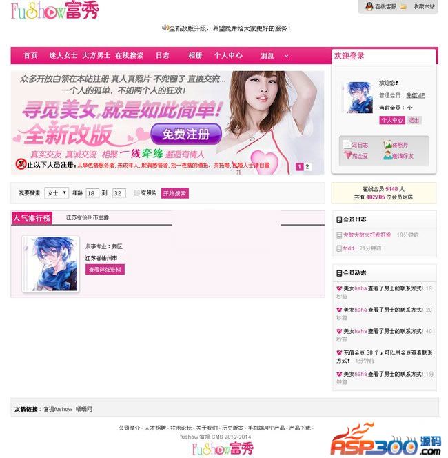 FuShow Friend可视化在线交友系统源码是采用网页视频模式cms系统,服务端采用php语言,支持网页视频聊天,主题秀场等,是轻量级的web视频网站建设系统。系统具有投入低,部署快,web开源等特点,是建设各种视频网站的首选,只需网页既可视频交流,秀场直播等,该系统同时支持苹果和安卓版,让pc端网页直接和手机视频面对面。
