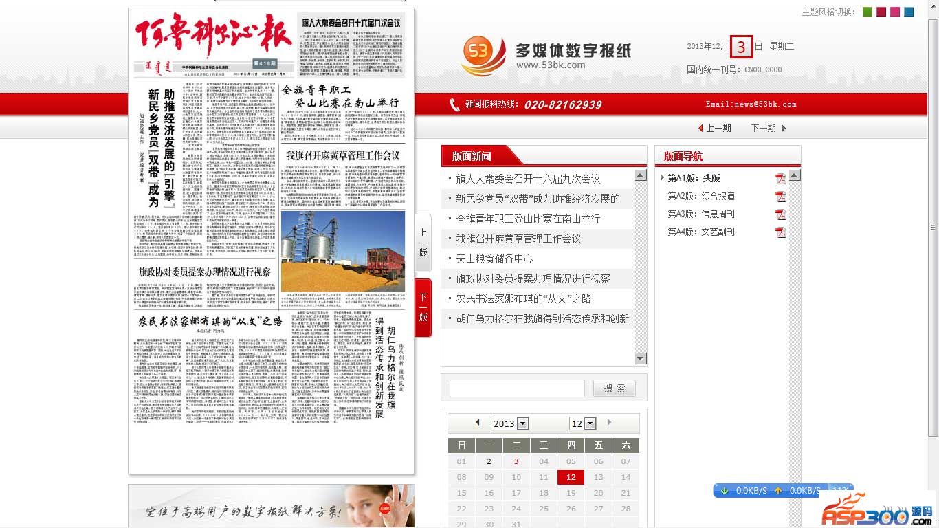 53BK多媒体数字报刊系统,产品代号为53BK E-Edition(以下简称53BK E-Edition),诞生于2008年,是asp.net技术中最为强大的多媒体数字报刊系统。本系统基于B/S结构和MVC架构创建,它将现行互联网应用功能与传统报纸媒体及大型数据库系统相结合,将报纸变为网络的、多媒体的形式,为读者展现更为生动的信息。
