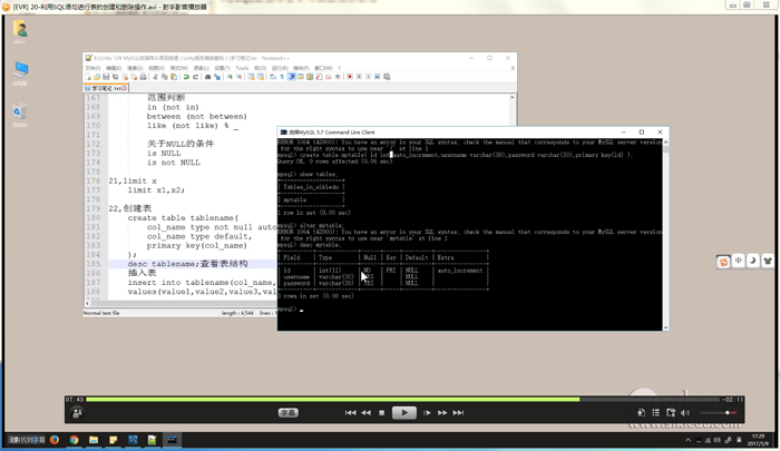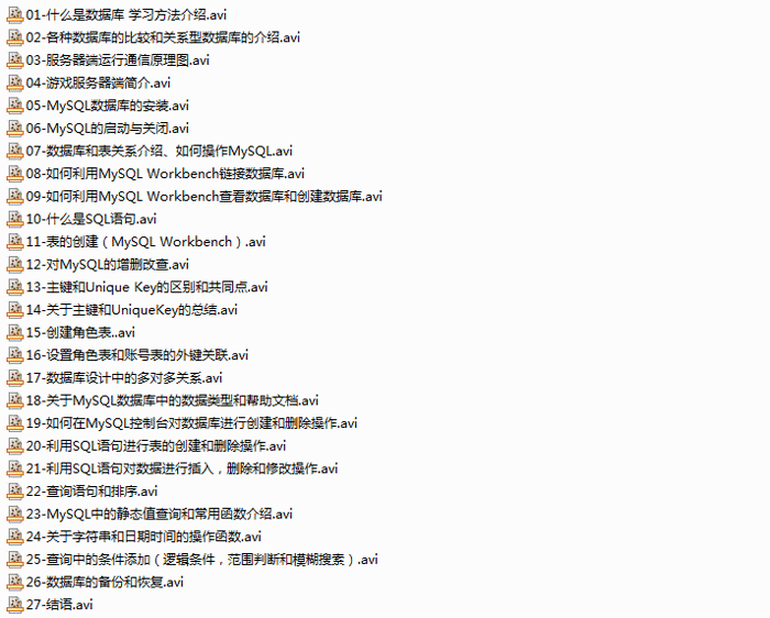 本套MySQL数据库视频教程,共27讲超清,是一套系统学习MySQL数据库的精讲课程。教程的主要内容包括:数据库的定义、各种数据库介绍、数据库通信原理、MySQL数据库的安装启动和关闭、数据库和表的关系、如何操作数据库、数据库表的相关操作(查询、增删改查等操作)、数据库备份及恢复。学会这套教程就可以完全熟练掌握MYSQL数据库。