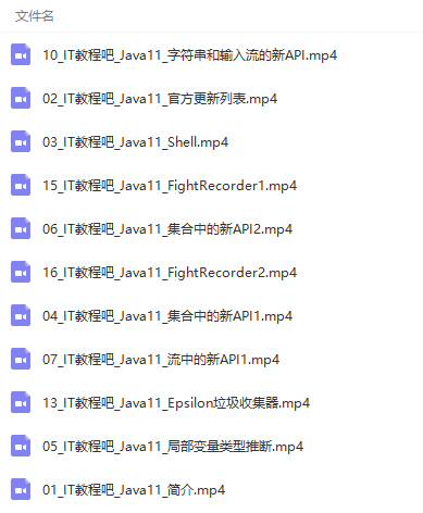 最新Java11新特性完整教程视频教程下载。2019年大白话学完Java11新特性教程。还在苦恼跟不上JDK更新速度? 还在苦恼看不懂官方文档? 本套视频语调轻快、讲解深入,带你一睹Java11的风采:新的局部变量的语法、更方便的调试运行程序的方式jshell及直接运行源代码、令人瞩目的ZGC, JFR、全新HttpClient API、兼容Unicode10的新的字符串API等。备注:包含课件、源码等资料。