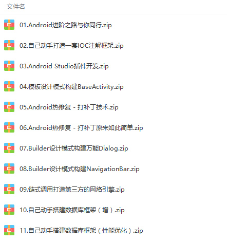 1、系统架构部分:主要有Android源码阅读设计模式分析,以及第三方框架源码分析,自己手动一步步搭建仿内涵段子项目的整体框架……