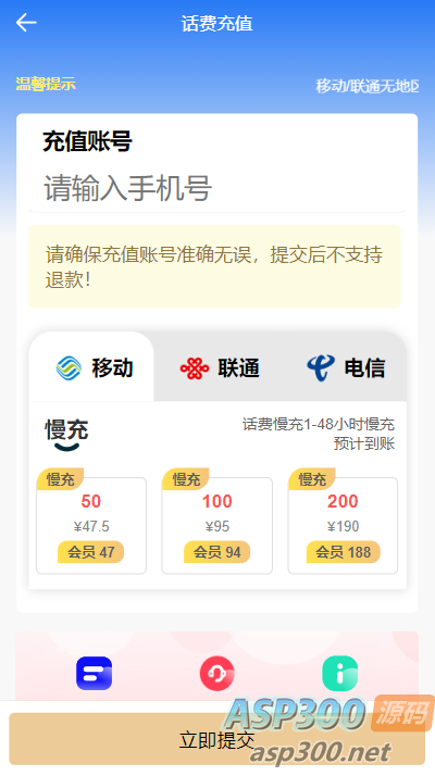 系统基于thinkphp框架开发,功能已全完善,可灵活对接其他上游渠道接口,默认对接了大猿人接口,另外可无限制自定义创建充值页面,首页支持后台自定义修改,支持三级分销,系统开源分享(原因:本套系统是帮客户开发的,但是客户结尾跑单了,没结算尾款,所以直接分享了!)