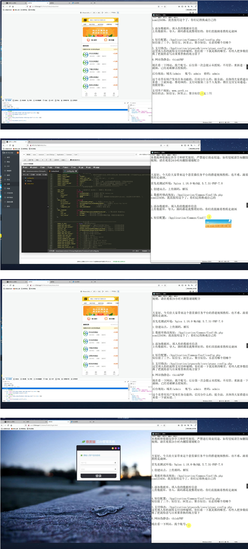【视频教程】悬赏猫任务平台去授权破解版+详细讲解配套搭建视频教程+支付短信修改 这套悬赏猫的其实很早就拿到了,不过一直没发,之前发的那几个也都是完美的版本,这个版本就留了一手。不过前两天有会员问了这套,就做了教程给大家发出来了。教程录制的很清楚,源码也都是整理过的,跟着教程走就OK。 ID:70322 声明:本站所有资源均来源于互联网收集,仅供学习参考使用,如若本站内容侵犯了原著者的合法权益,可联系我们进行处理。