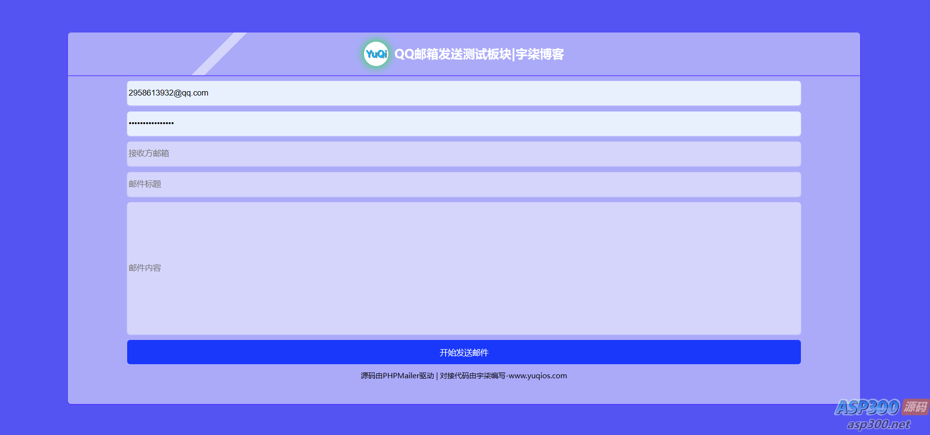 终于,我成功编写了一款支持API接口、自定义QQ邮箱地址、自定义邮箱标题和内容的源码!