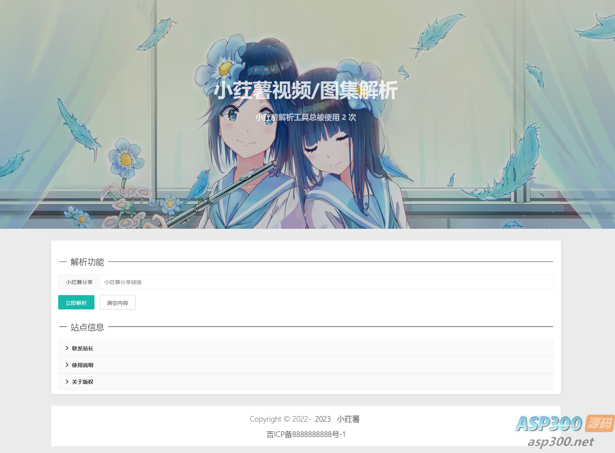 小红书视频图集解析网站源码,在红书看到好看的图片以及好看的头像,但是直接下载又有水印就非常难受,这个可以一键解析去除水印,支持统计解析次数,本地接口。 声明:本站所有资源均来源于互联网收集,仅供学习参考使用,如若本站内容侵犯了原著者的合法权益,可联系我们进行处理。