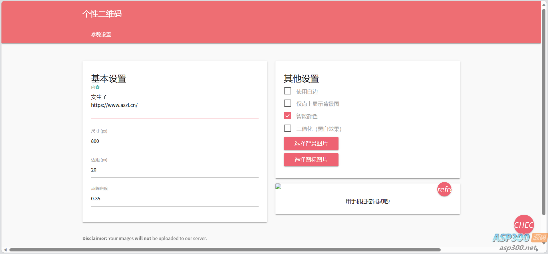 一款功能强大的个性化二维码生成网页源码,支持手机和电脑自适应展示,并提供多项自定义设置。您可以设置白边、自定义背景图和图标,以及背景调光功能。通过这些特性,您可以根据个人喜好和需求设计出与众不同的二维码。