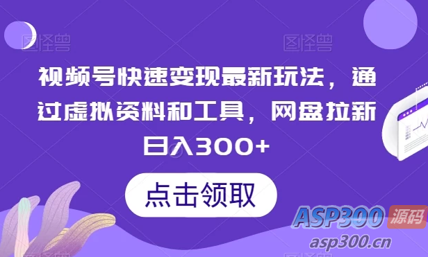 今天给大家带来的项目是:《视频号快速变现最新玩法 通过虚拟资料和工具 网盘拉新 日入300+》,这个项目呢,主要是通过视频号来发布项目的拆解或者项目工具的方式,引导客户去主动添加我们,留下钩子,找我们要虚拟的资料的方式,而且现在很多人也都希望先获得免费的东西,所以就可以通过网盘拉新,获得免费资料的方式,我自己也测试了,收益也在三百多,而且都是别人主动添加要资料,我也整理了一份放在了资料包,这个方式很简单,也很容易变现!