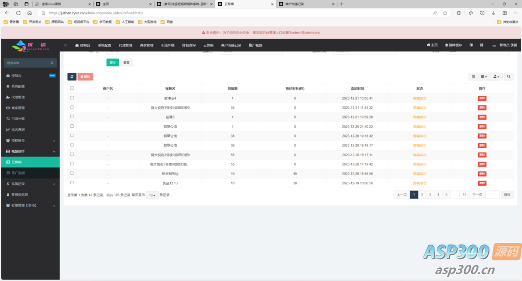 外面稀有的TZDYM001矩阵系统源码,矩阵营销系统多平台多账号一站式管理,一键发布作品。智能标题,关键词优化,排名查询,混剪生成原创视频,账号分组,意向客户自动采集,智能回复,多账号评论聚合回复,免切换,免登陆发布….助力您在这个赛道快起步速追赶强获益。管理后台admin.php,商户后台store.php,代理后台agent.php 声明:本站所有资源均来源于互联网收集,仅供学习参考使用,如若本站内容侵犯了原著者的合法权益,可联系我们进行处理。