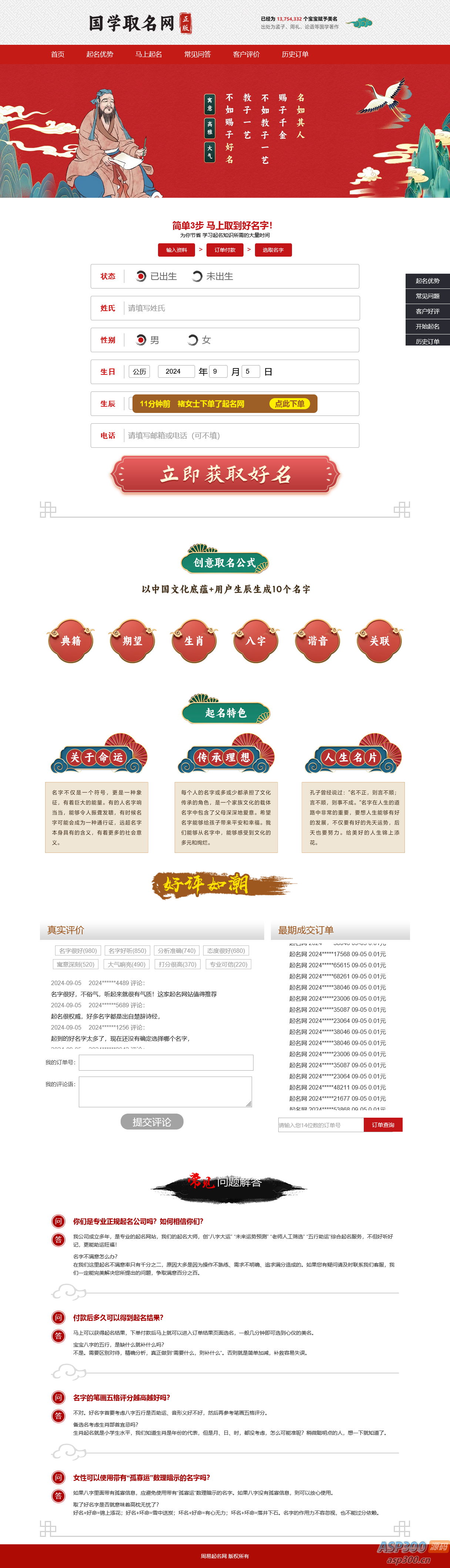 特点:免注册,免登录,可直接在线起名,并且完成付款。