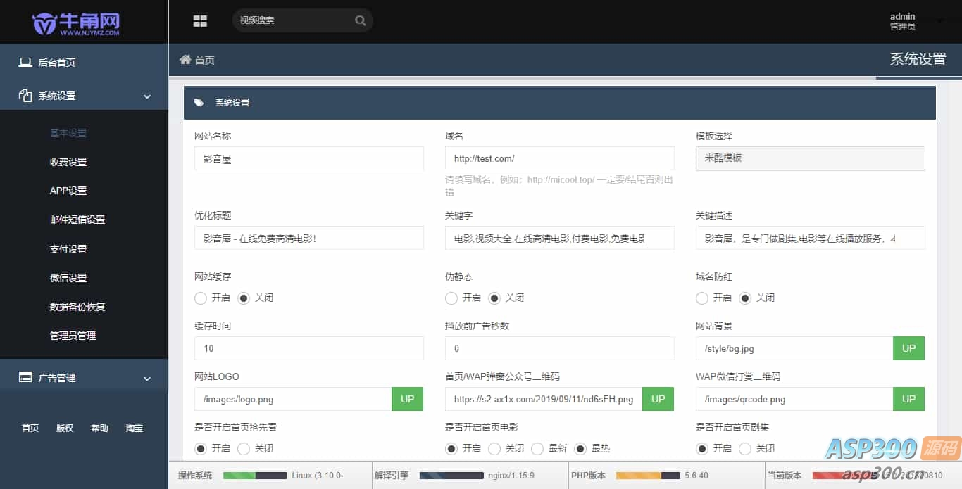 进入后台修改系统信息改成你自己的即可,后台可添加修改广告位。