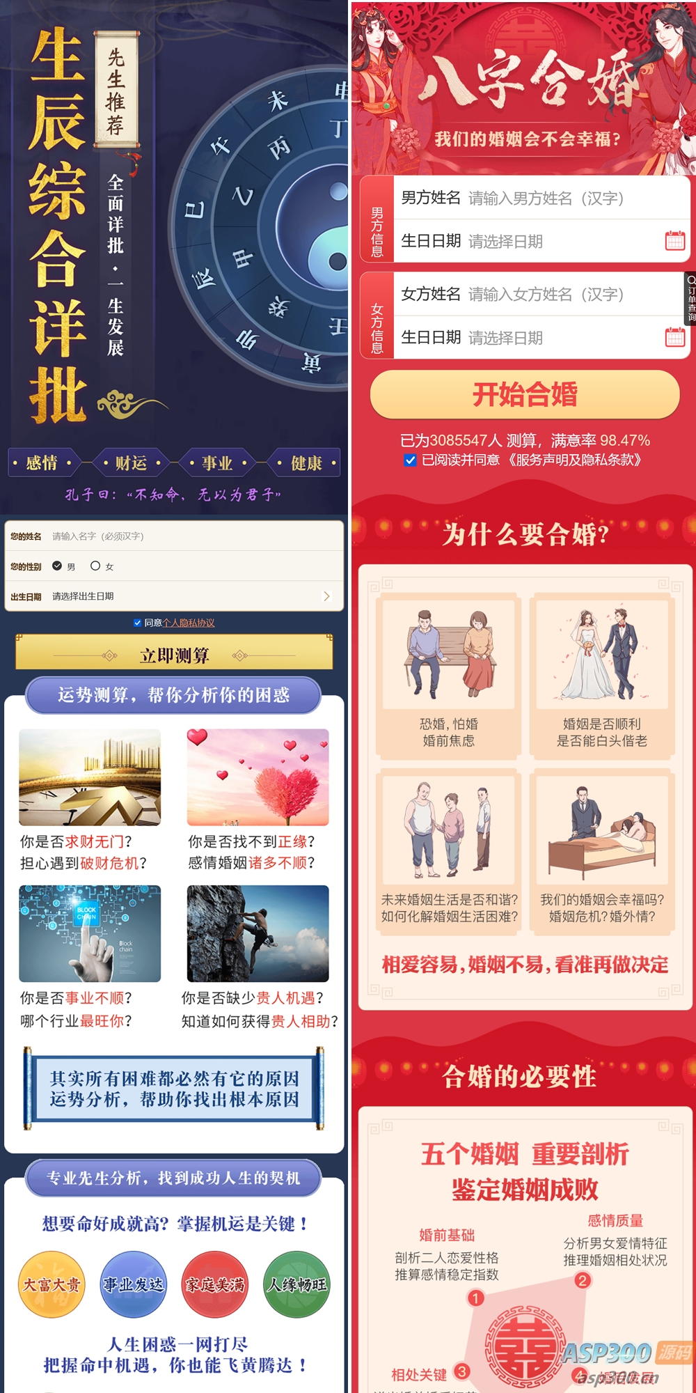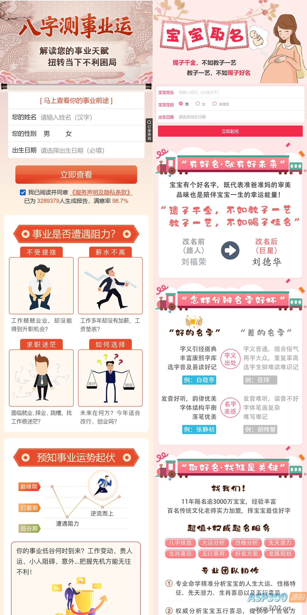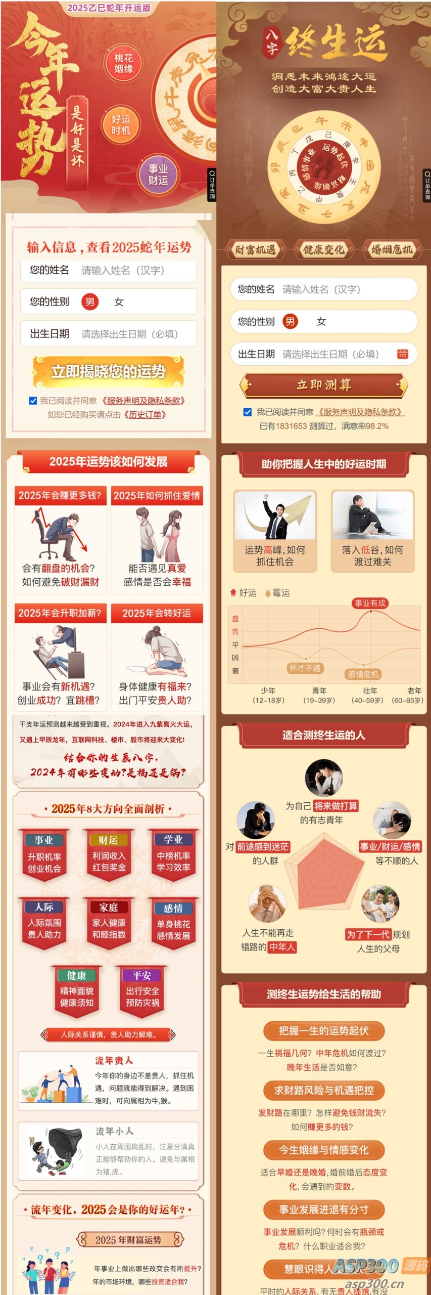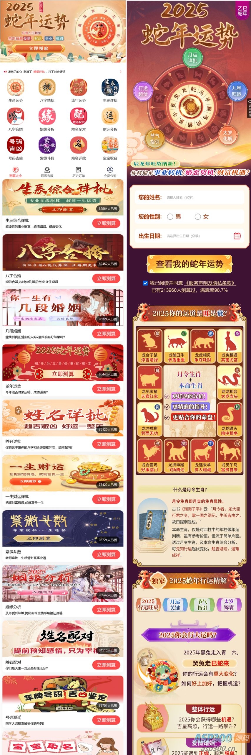 八字精批、事业财运、姓名分析、宝宝起名、姓名配对、综合详批、姻缘测算、八字合婚、紫微斗数、龙年运程、月老姻缘、号码解析、塔罗运势、塔罗爱情等。