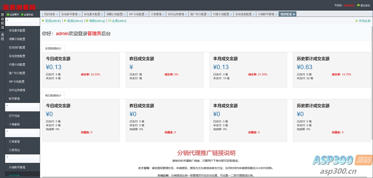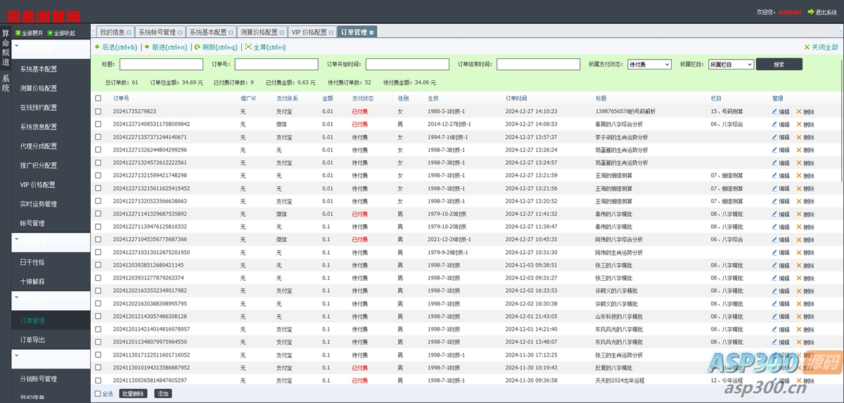 后台显示成交订单量、未成功付款订单量、付款总金额、未付款总金额