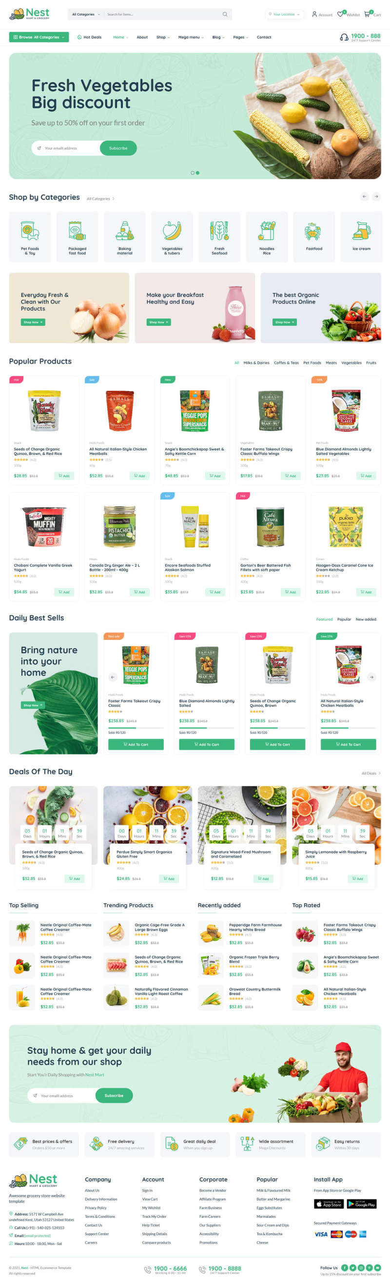 一款HTML Bootstrap构建,极具吸引力电子商务模板,专门为多功能商店设计,适用于:杂货店、超市、有机商店以及销售饮料、蔬菜、水果、冰淇淋、酱、香草、果汁、肉类、冷饮、香肠、鸡尾酒、软饮料、饼干等产品的在线商店网站响应式模板。