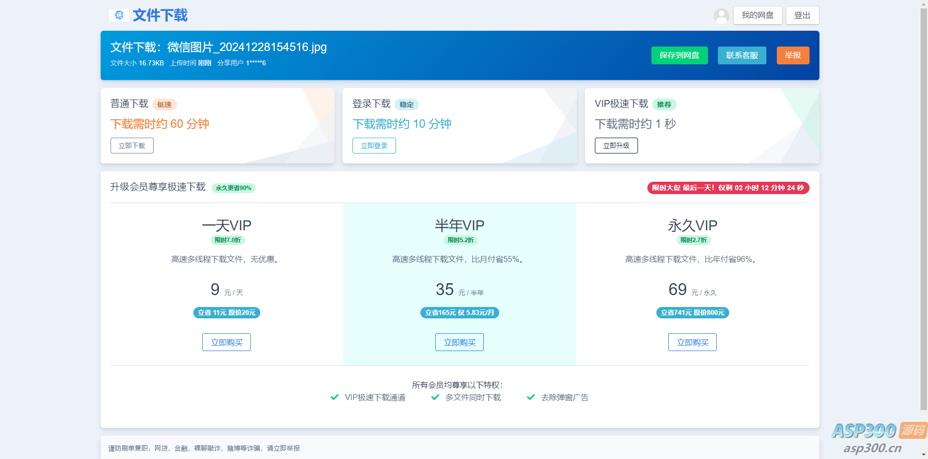 闪客网盘同款的运营级网盘系统网站源码,一款非常实用的网盘系统,支持转存和限速下载,VIP开启高速下载!