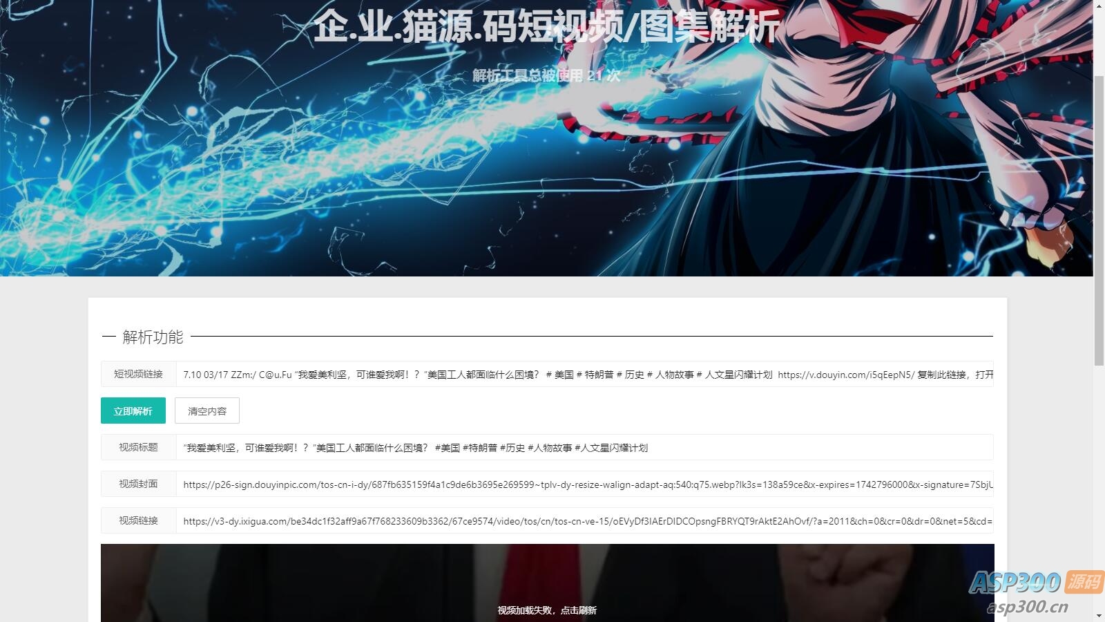 上传即可使用,3月10号测试了下,接口可以正常解析