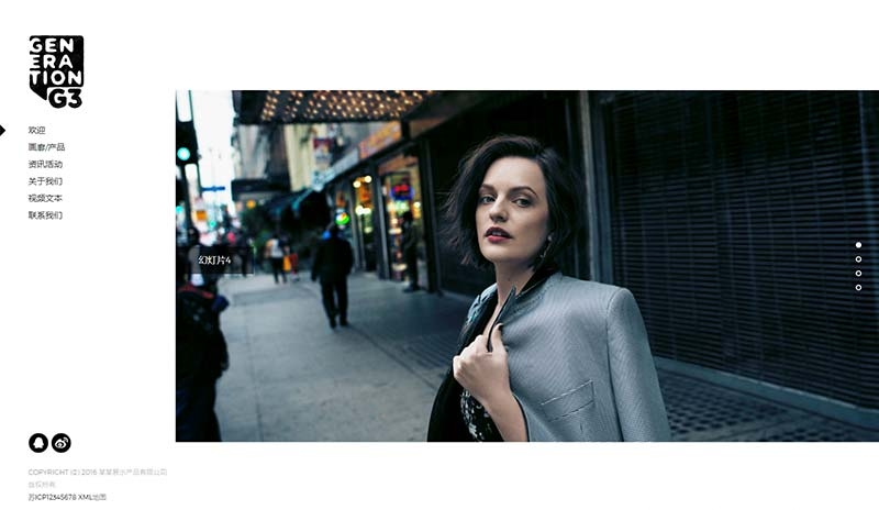 2、效果相当的炫酷,相当简洁大气高端,模板简单,全部已数据调用,只需后台修改栏目名称即可