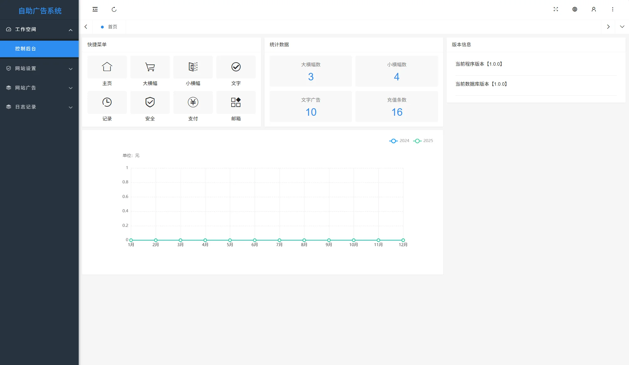点击招商信息链接就可以自助购买该广告位,价格可在后台随时调整,自带彩虹易支付接口;