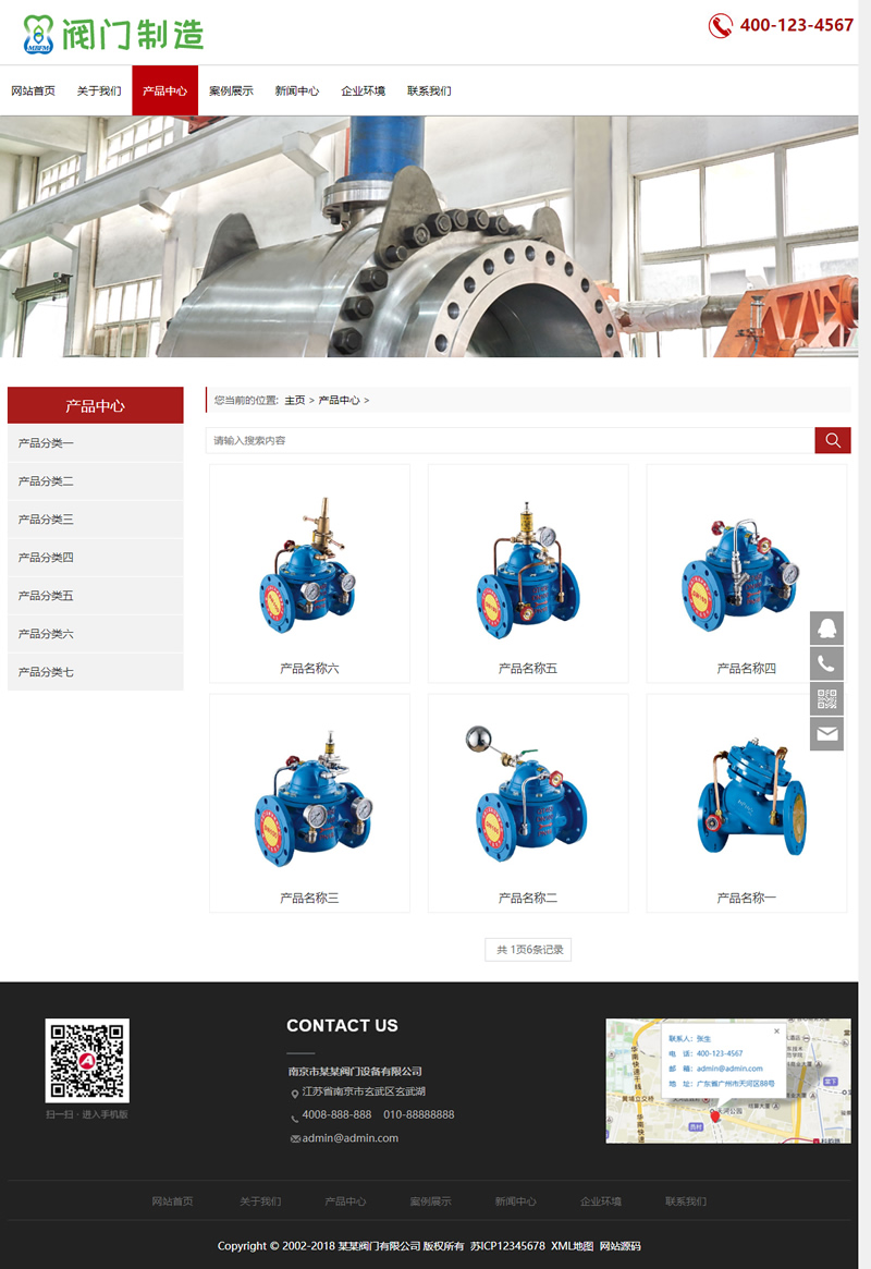 3、适用于机械阀门网站模板、五金机械网站源码;