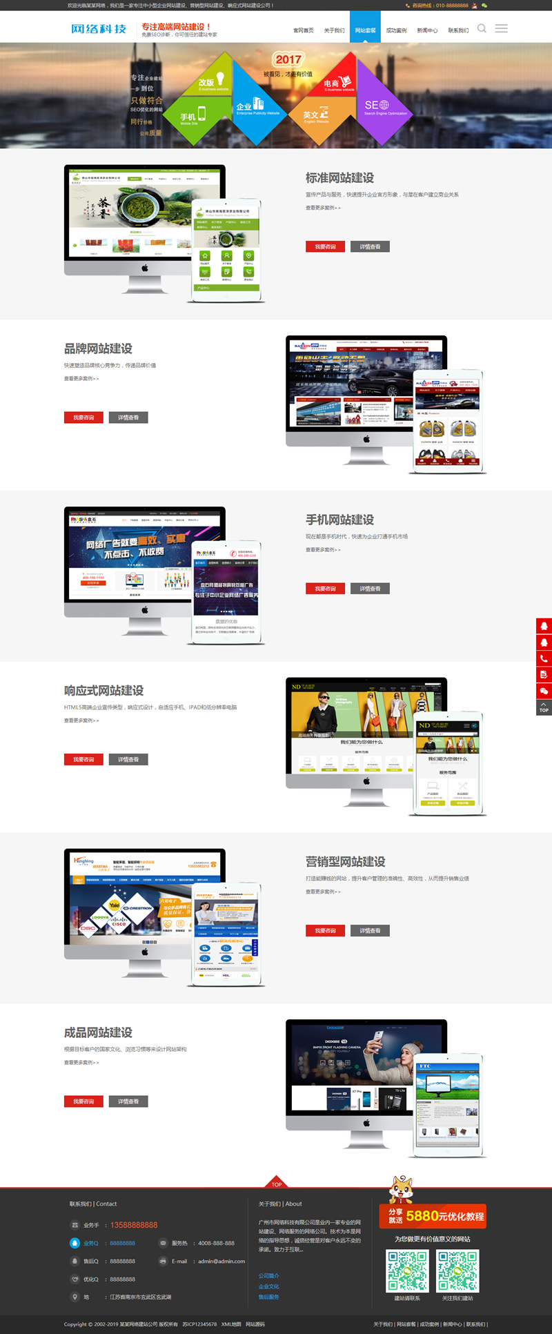 本套织梦模板采用织梦最新内核开发的模板,这款模板使用范围极广,不仅仅局限于一类型的企业,建站公司源、网站建设类的网站都可以用该模板。你只需要把图片和文章内容换成你的即可,颜色都可以修改,改完让你耳目一新的感觉!布局规整,利于用户体验,手工书写DIV+CSS,代码精简。