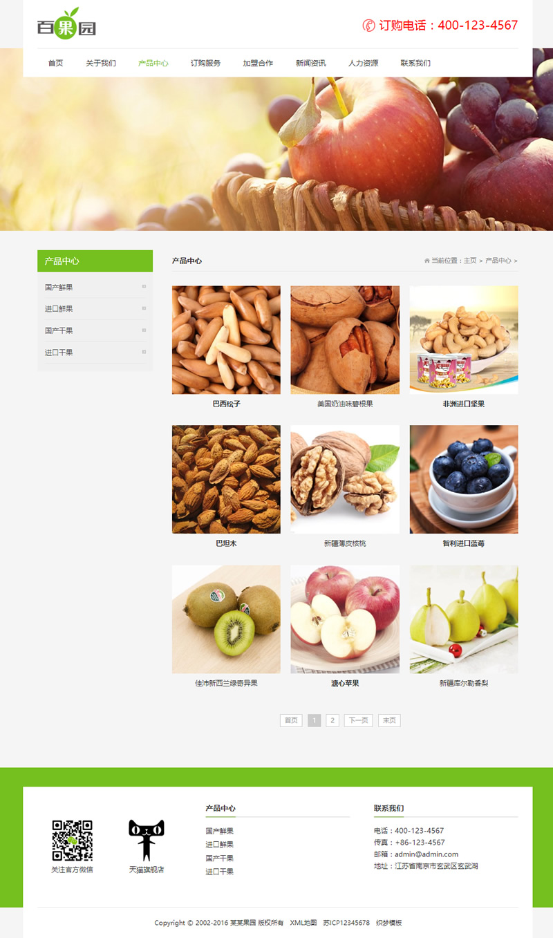 本套织梦模板采用织梦最新内核开发的模板,这款模板使用范围极广,不仅仅局限于一类型的企业,果园水果、农产品类的网站都可以用该模板。你只需要把图片和文章内容换成你的即可,颜色都可以修改,改完让你耳目一新的感觉!布局规整,利于用户体验,手工书写DIV+CSS,代码精简。