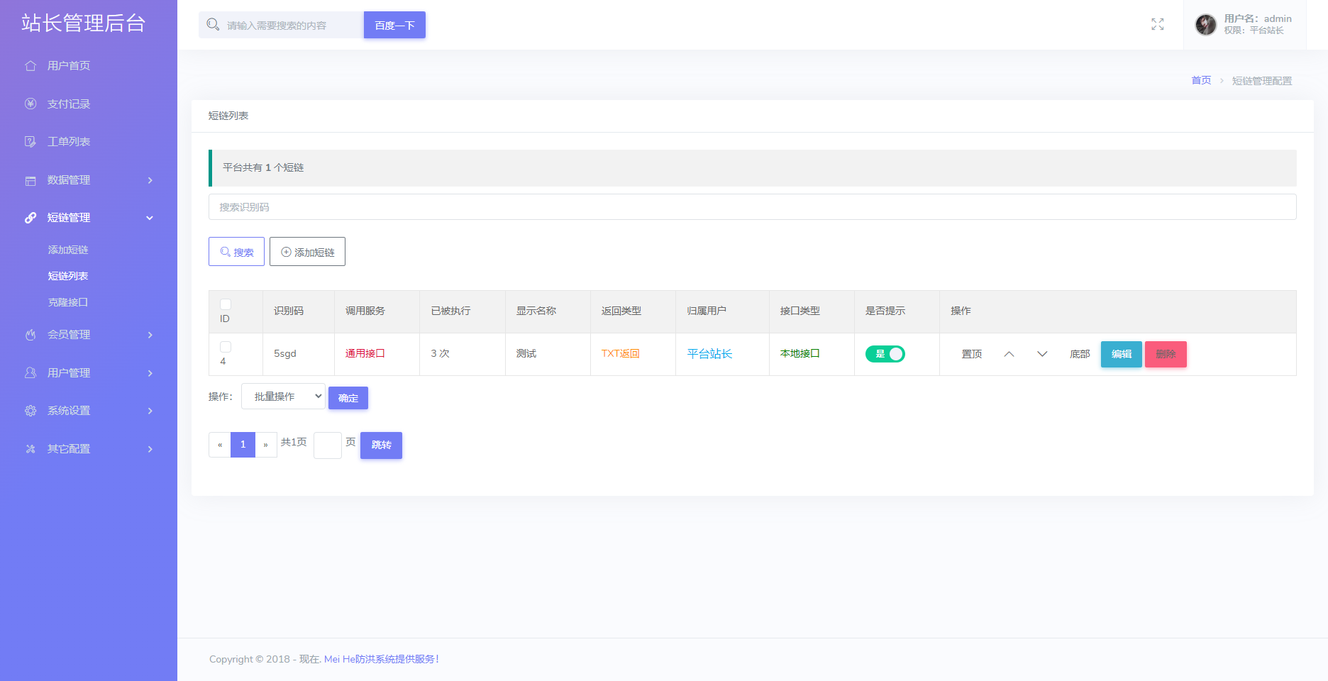 一款不错的防红源码,支持直链/跳转/短链接,使用本系统红了的域名可在微信和QQ直接打开,系统带访问记录列表,可查看访问者ip和访问方式,带会员和支付功能