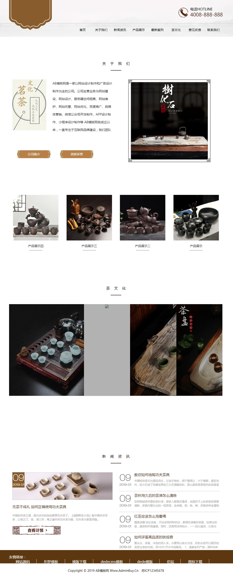 3、适用于茶叶茶道织梦模板、茶文化网站源码;