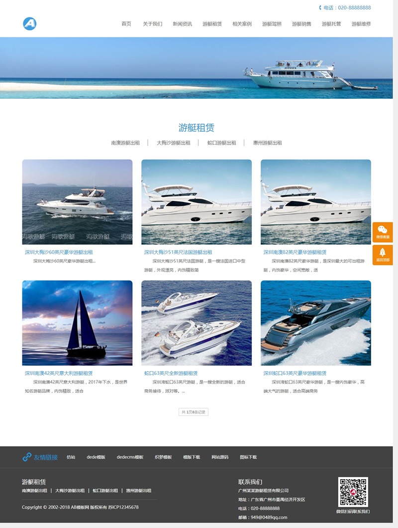 3、适用于船舶轮船网站源码、游艇租赁织梦模板;