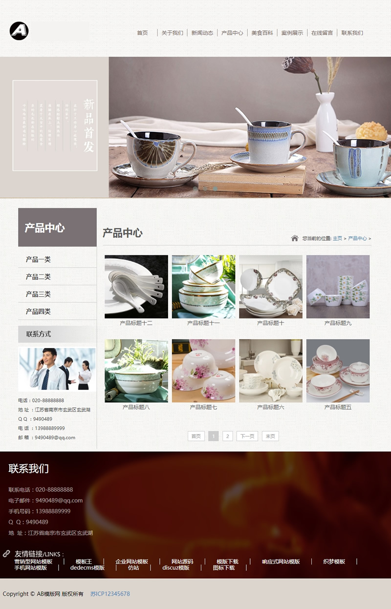 3、适用于餐具网站织梦模板、陶瓷瓦罐网站源码;
