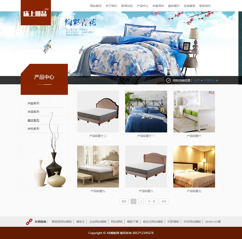 3、适用于床上用品织梦模板、家居生活用品网站源码;