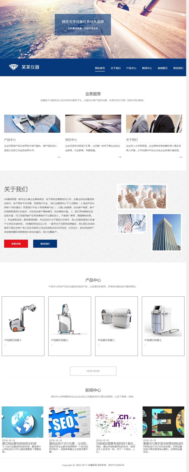 3、适用于精密仪器网站源码、光学设备织梦模板;