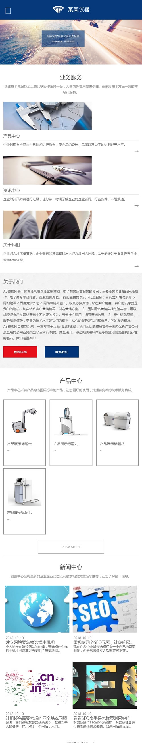 模板名称:(自适应手机版)响应式测量试验机类织梦模板 HTML5精密仪器光学设备网站源码