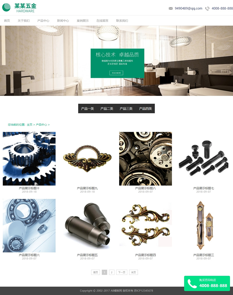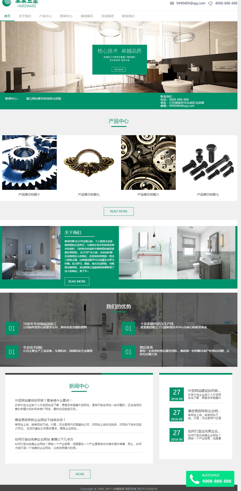 3、适用于五金轴承织梦模板、卫浴产品网站源码;