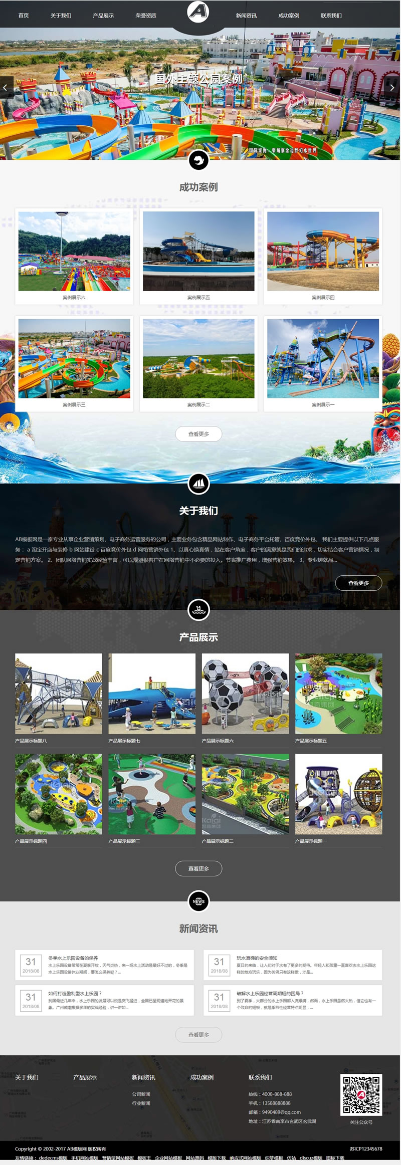 (自适应手机版)响应式水上游乐园设备类织梦模板 HTML5娱乐设备设施网站源码下载