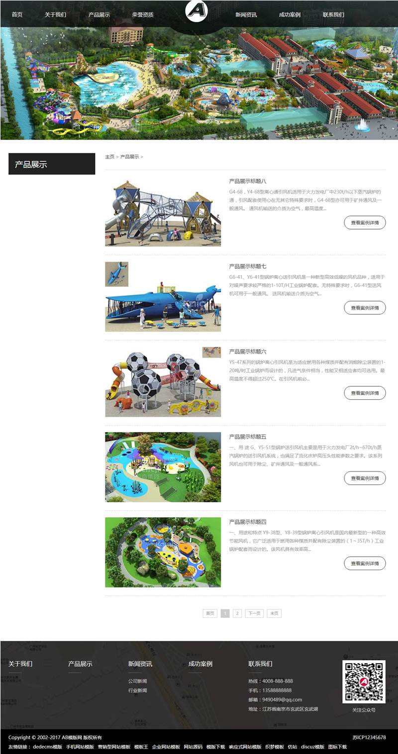 3、适用于游乐园设备模板、娱乐设备设施网站源码;