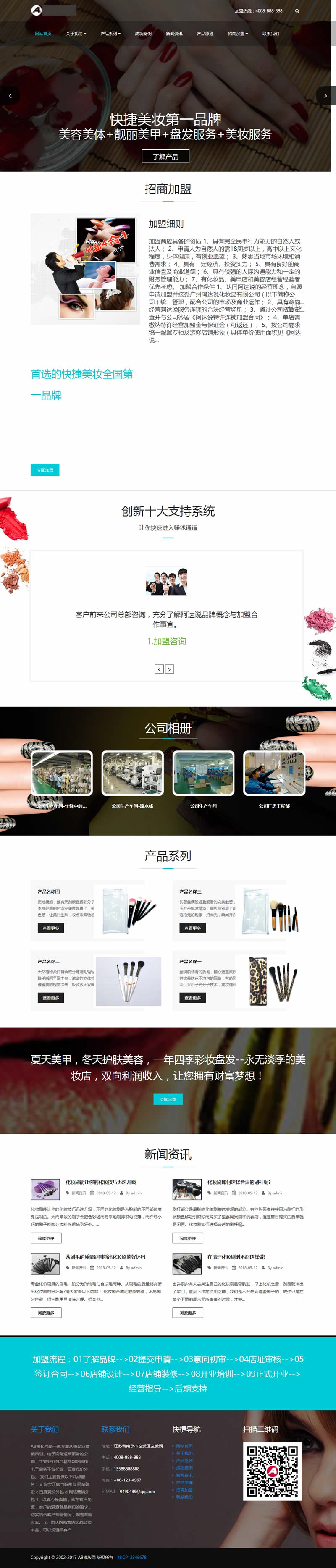 (自适应手机版)响应式美妆护肤连锁类网站织梦模板 HTML5高端化妆品销售网站源码下载