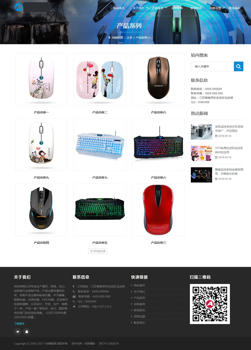 3、适用于电脑配件网站模板、机箱鼠标网站源码;