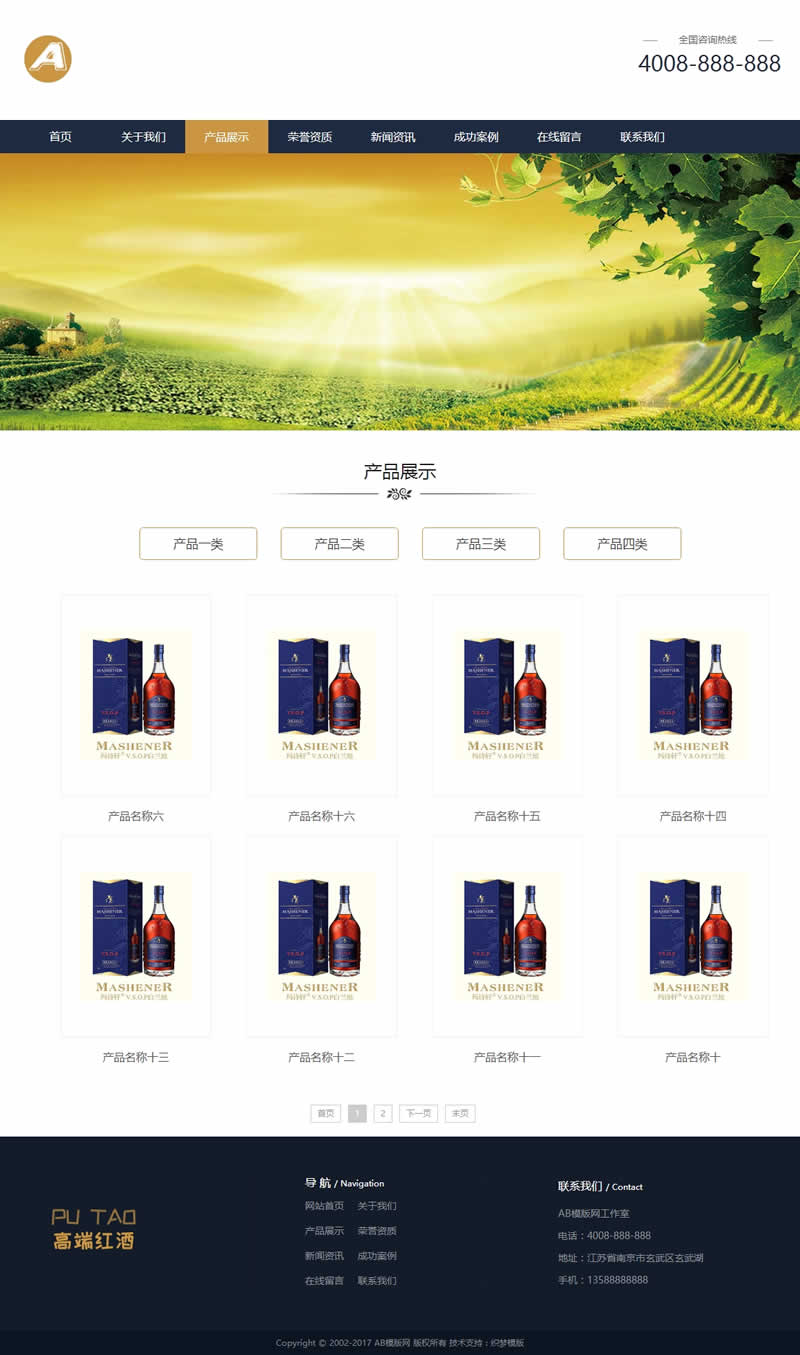 3、适用于酒水销售网站源码、葡萄酒红酒网站模板;