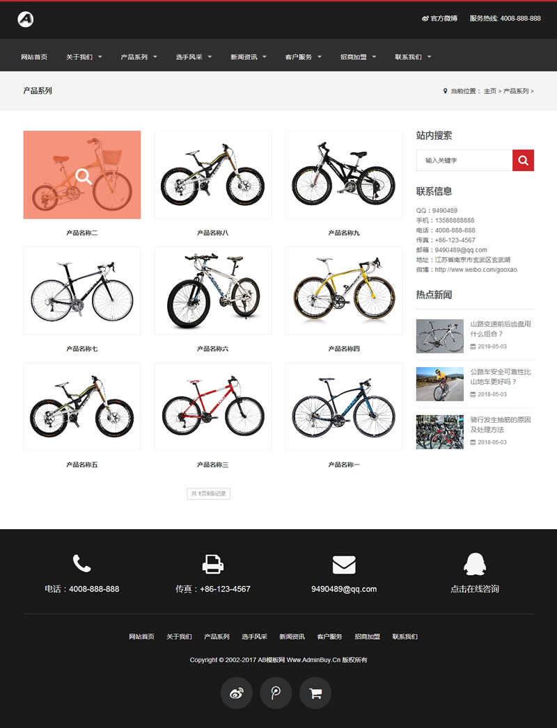 3、适用于休闲运动品牌网站模板、自行车生产销售网站源码;