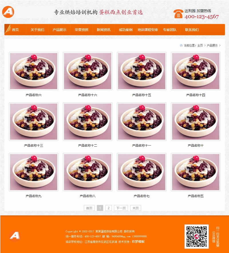 3、适用于烘焙培训学校模板、厨师培训机构网站源码;