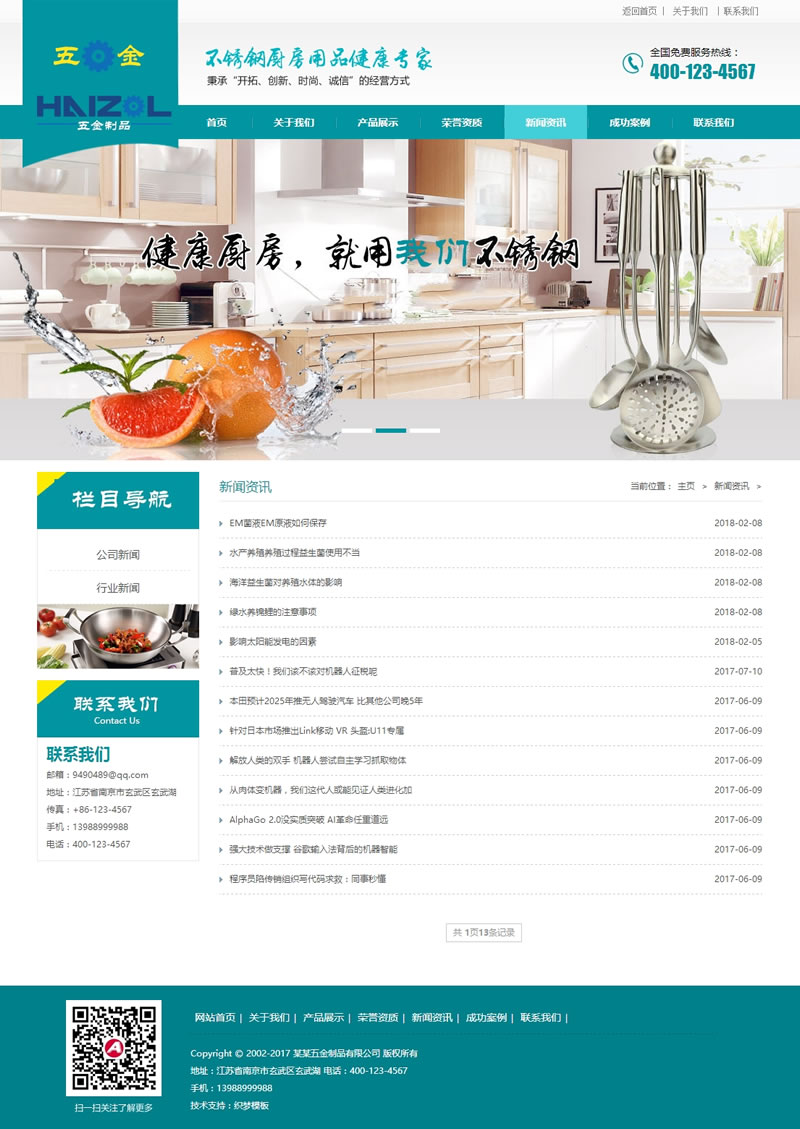 3、适用于厨房不锈钢制品、五金制品网站模板;