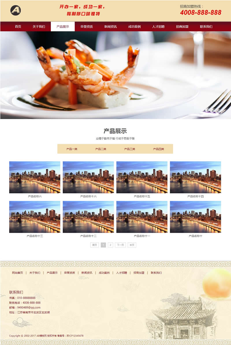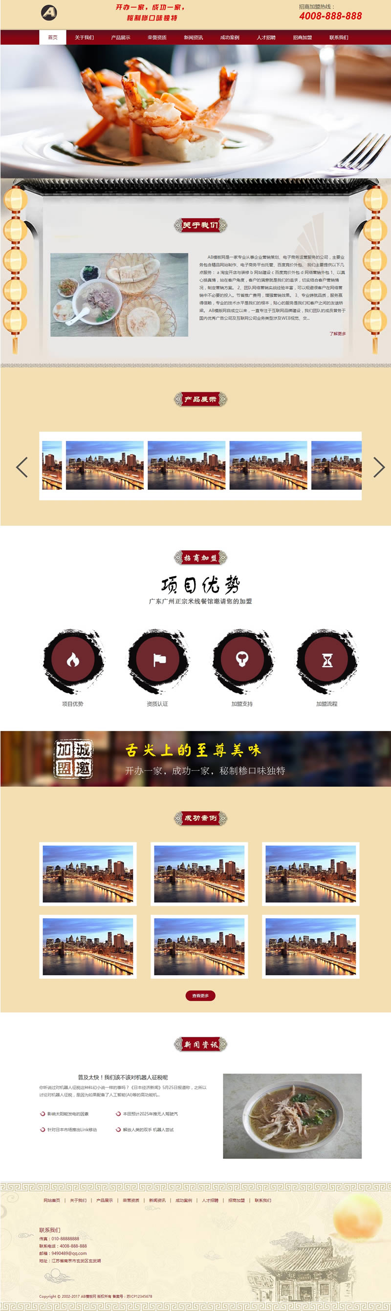 3、适用于小吃加盟网站源码、餐饮早点类模板;