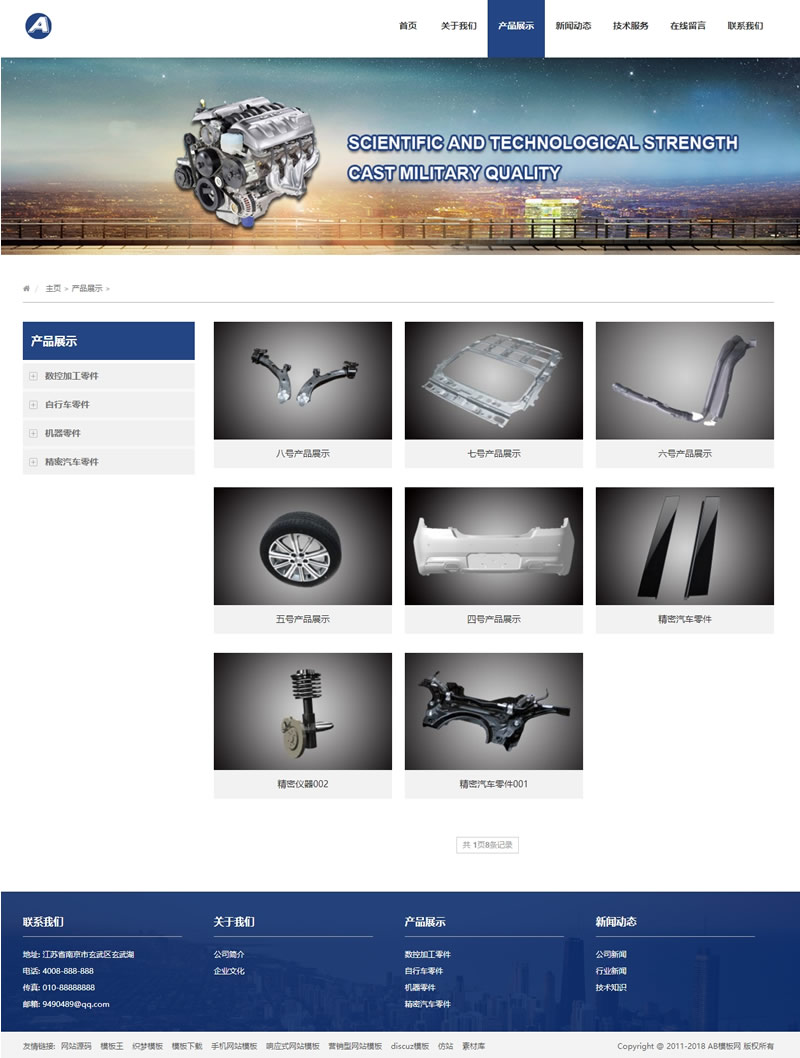 (自适应手机版)响应式金属制品网站源码 HTML5汽车配件零部件类企业网站织梦模板