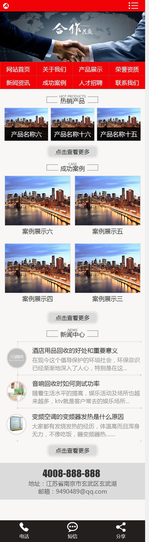 2、效果相当的炫酷,相当简洁大气高端,模板简单,全部已数据调用,只需后台修改栏目名称即可