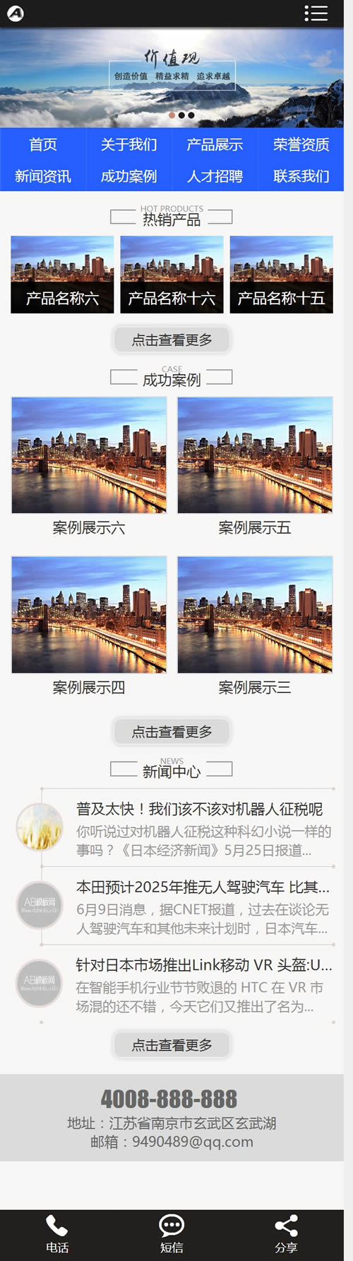 2、效果相当的炫酷,相当简洁大气高端,模板简单,全部已数据调用,只需后台修改栏目名称即可