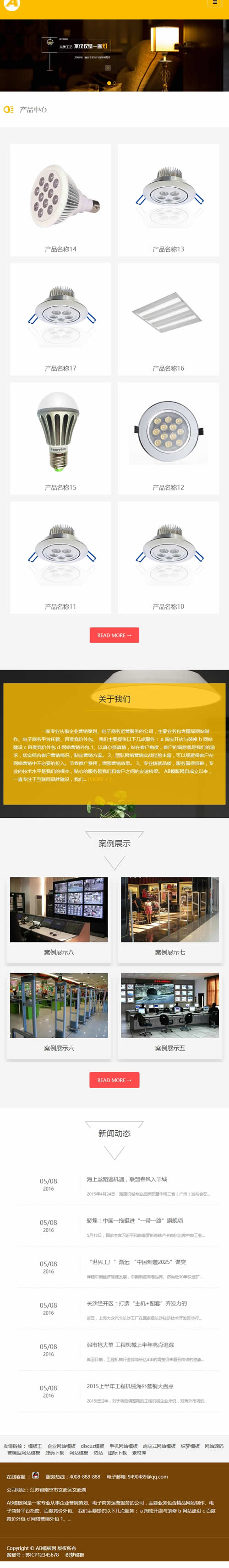 3、适用于照明灯饰网站模板、响应式LED网站源码;