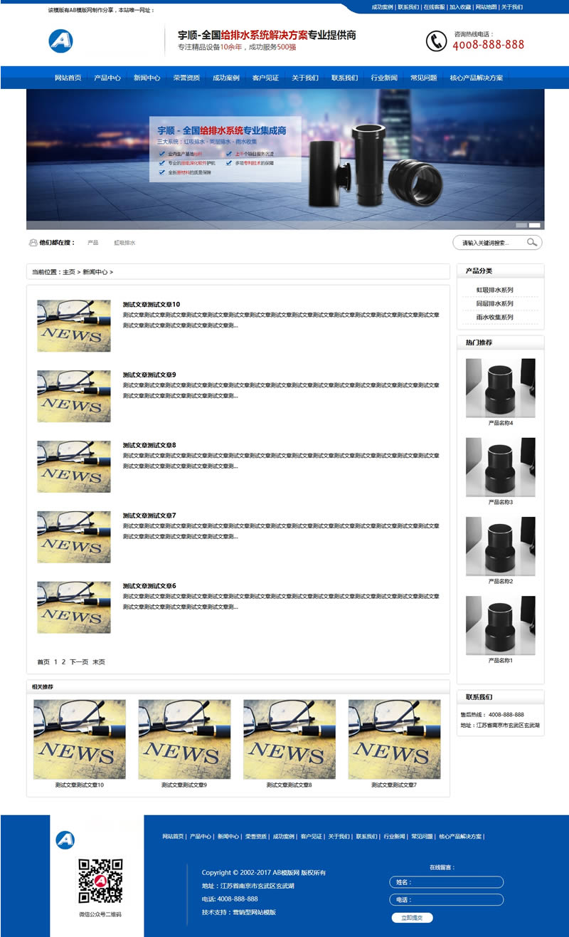 (带手机版数据同步)营销型排水系统管道类企业织梦模板 水管五金行业营销型网站源码下载