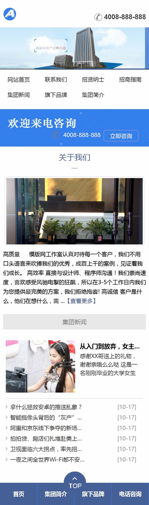2、效果相当的炫酷,相当简洁大气高端,模板简单,全部已数据调用,只需后台修改栏目名称即可
