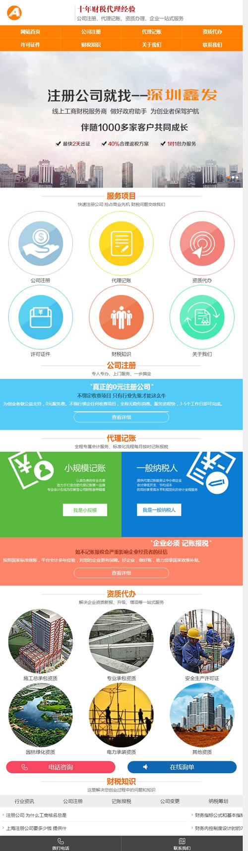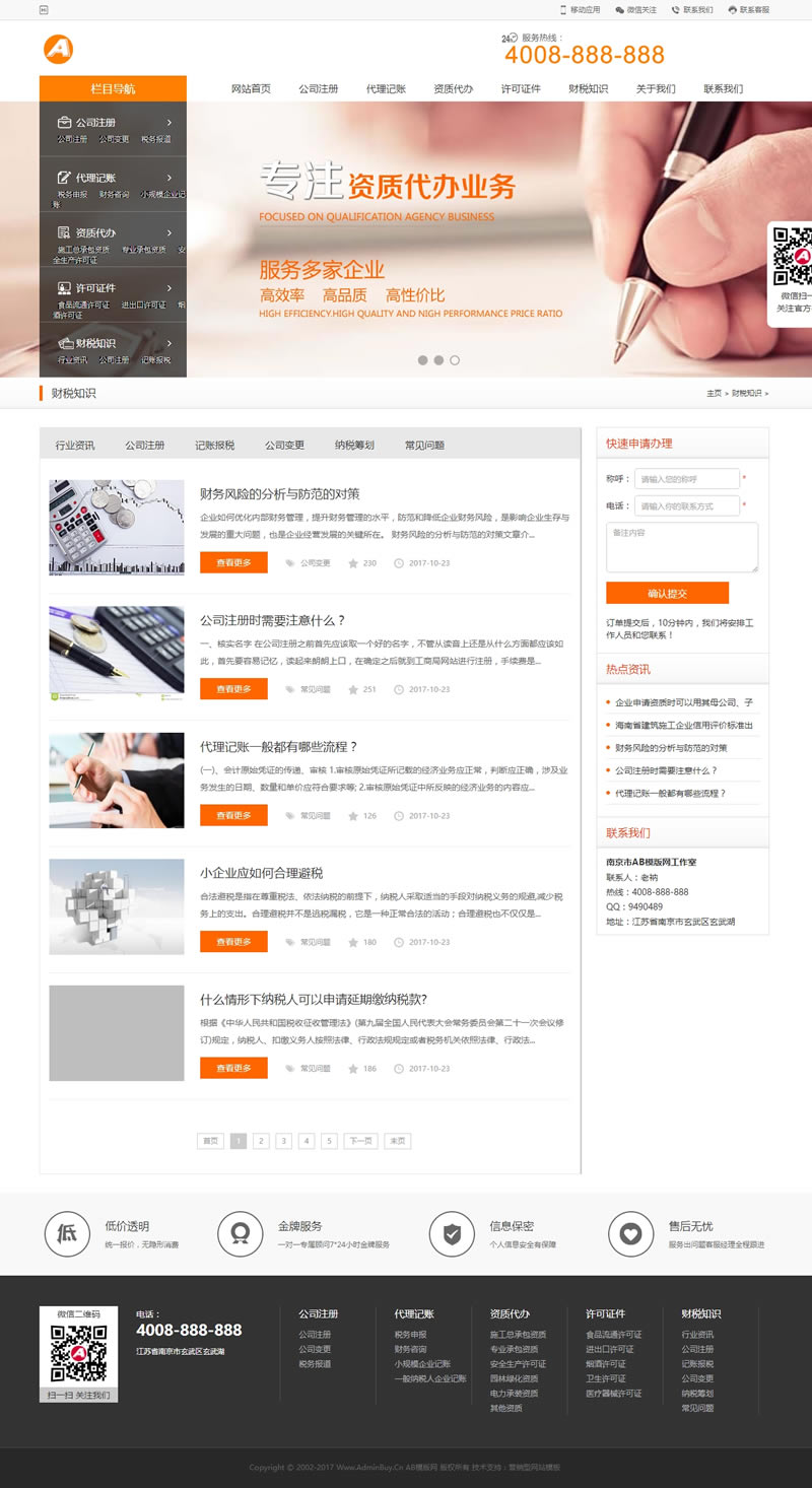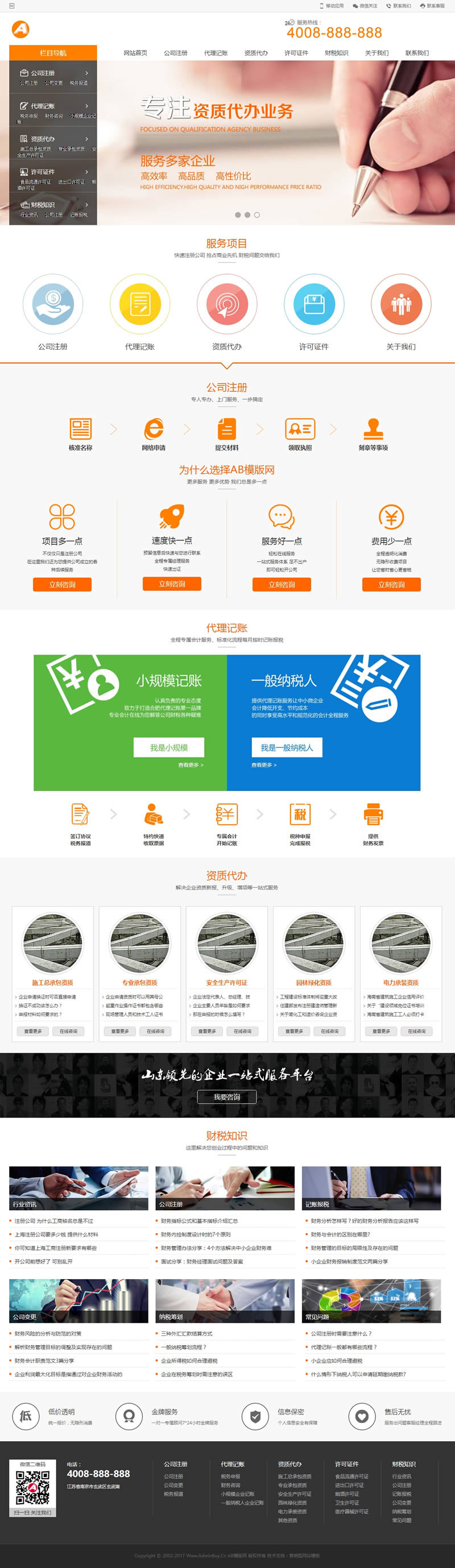 3、适用于公司代理注册模版、财务外包类网站源码;