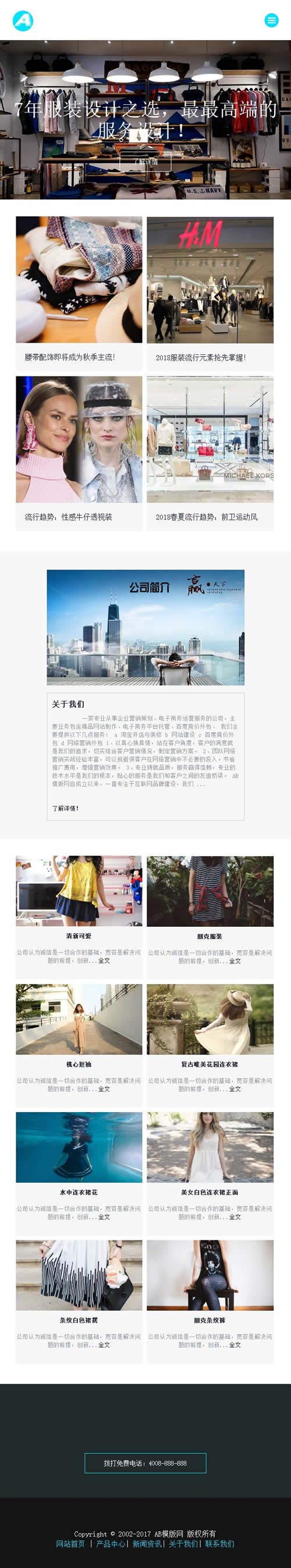 3、适用于女装服装网站模板、html5响应式网站模板;